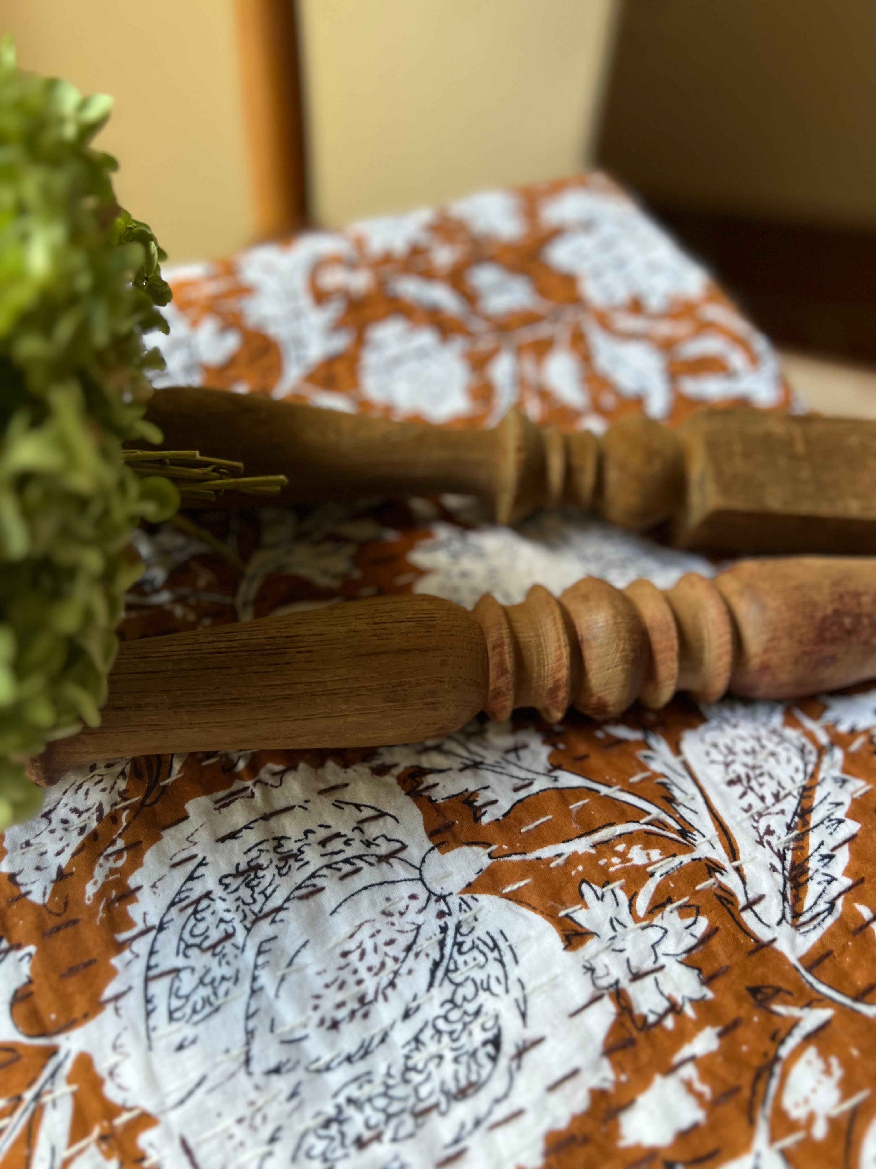 ・ブロックプリントの特徴として、プリントのズレ、インクのにじみ、色むらがございます
